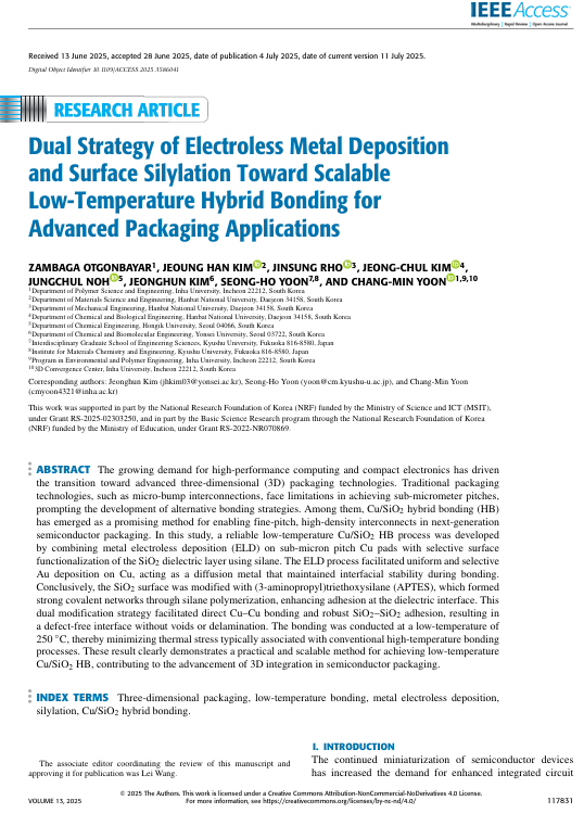 Dual Strategy of Electroless Metal Deposition and Surface Silylation Toward Scalable Low-Temperature Hybrid Bonding for Advanced Packaging Applications, 2025, IEEE Access, http://doi.org/10.1016/j.jiec.2025.06.045