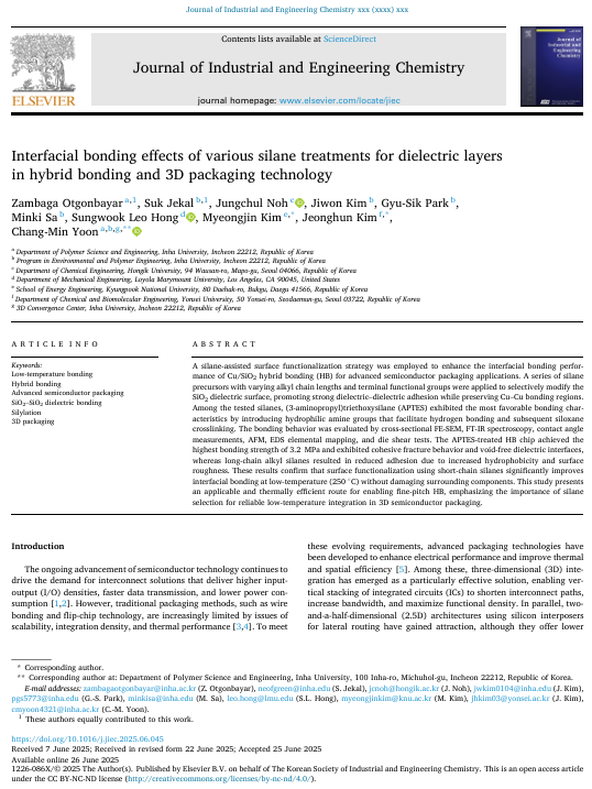 Interfacial bonding effects of various silane treatments for dielectric layers in hybrid bonding and 3D packaging technology, 2025, http://doi.org/10.1109/ACCESS.2025.3586041